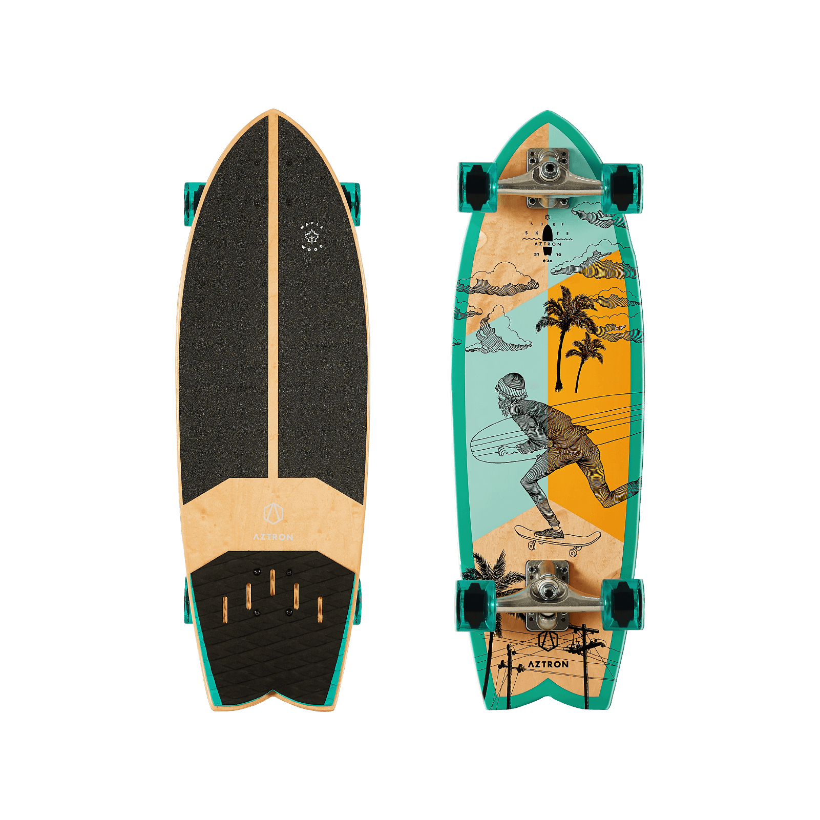 STREET & FOREST มาพร้อม Truck ที่มอบความรู้สึกแปลกใหม่เหมือนกับกำลัง Surfing อยู่บนท้องทะเล โดยที่เราไม่จำเป็นต้องอยู่แค่ที่ทะเลเท่านั้น สามารถรู้สึกแบบเดียวกันได้บนท้องถนน ตัวบอร์ดถูกออกแบบมาให้มีความยาวที่ไม่มากเกินไปเพื่อความคล่องตัวและให้วงเลี้ยวที่แคบขึ้น Aztron ออกแบบ Surfskate มาอย่างดีที่สุด เพื่อให้ผู้เล่นสามารถสัมผัสความรู้สึกราวกับการกำลังโต้คลื่นดีๆ สักลูกบนท้องทะเล